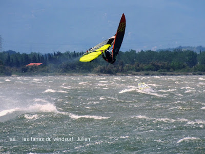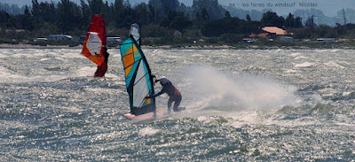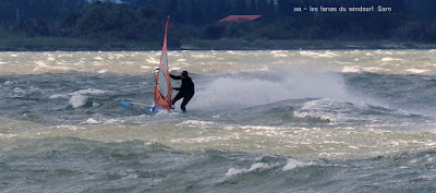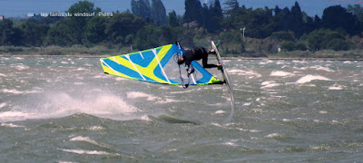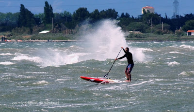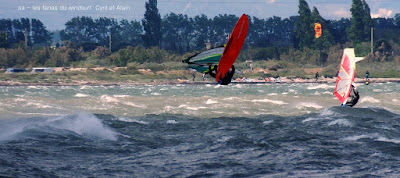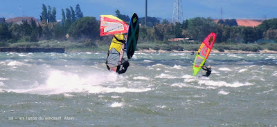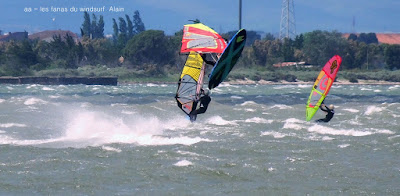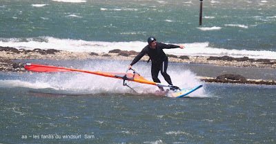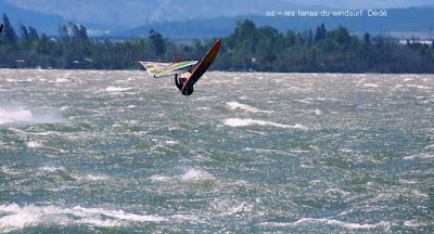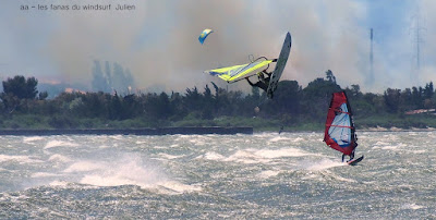 Dimanche, Coudalère. Assez tôt il n'y a que 3 ou 4 fanas puis ça se remplit. Au début bon pour 3.7 et la trifin, le vent est assez régulier, ensuite il monte assez nord et devient plus irrégulier, cette fois ci j'ai ma 3.3 sur la 68, une régalade pendant 2 bonnes heures, puis le vent redevient capricieux. Il fait beau et doux, ce vent fort va faire un feu vraiment impressionnant espérons que cela ne soit pas trop grave!! beaucoup de monde encore une fois.