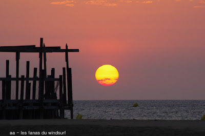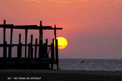 Mardi,Le Rouet. 6h10 le voilà!! lever 5h00 ce matin, on devient fous avec cette période de pétole!! mais bon là il y a du vent, 20-25 noeuds ouest-nord-ouest. Le spectacle est toujours aussi magnifique, nous sommes 5, Yvan, son fils Arthur, Toutoune, Lucky et moi. On va en profiter jusqu'à 10h20, comme si on avait fait toute une journée, un peu déphasés les lèves tôt, amis c'était trop bien!!