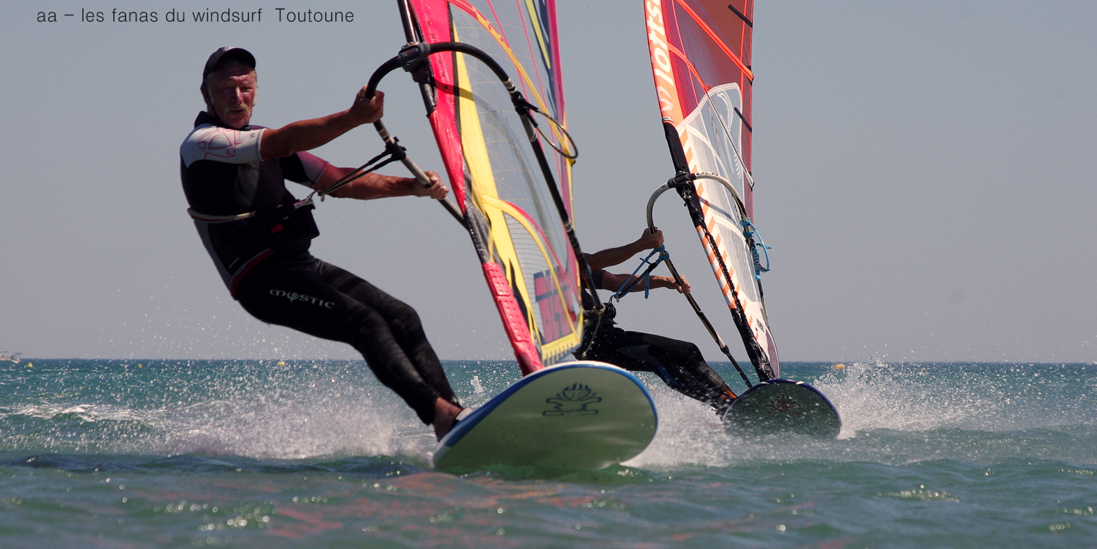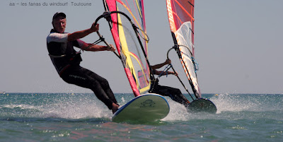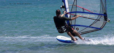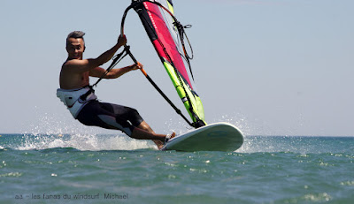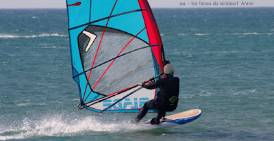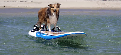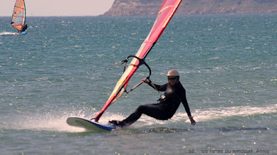 Vendredi, Le Rouet. Souriez vous êtes heureux serait le résumé du jour! partis tôt pour en profiter jusque vers 14h00, et oui c'est l'electrobeach et on est en plein dedans faut pouvoir rentrer chez nous!! Au début pas grand chose et puis d'un coup le vent prend des tours, évidemment j'ai grée 6.2 et évidemment je vais me retrouver vite à la rue, on change pour 5.3, je dis on parceque Toutoune va aussi en profiter, et même Lucky qui s'est éclaté à se faire pousser par le vent, heureux je vous dis. Pas nombreux un ïlot de bonheur.