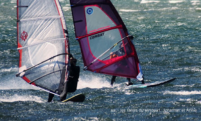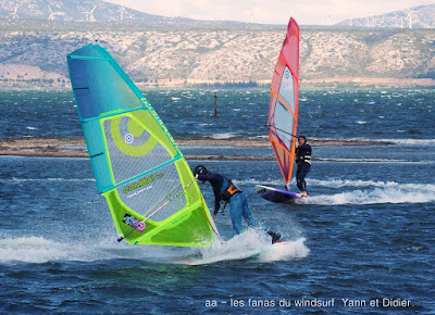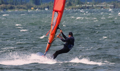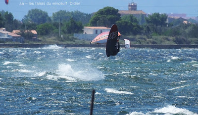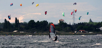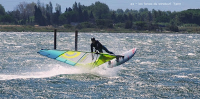 Lundi, Coudalère. Petit Coudalère aujourd'hui mais on avait vraiment envie de changer d'air!! le vent est irrégulier et passe rapidement au nord en devenant vraiment instable, d'abord en 4.5 puis en 4.2, jamais bien dans mon harnais.Plan d'eau à peine formé et surtout énormément d'algues, dommage. On aurait préféré du bon gros ouest nord ouest mais ça semble difficile a avoir en ce moment!!