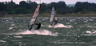 Mercredi, Coudalère. Ca faisait si longtemps!! bon un petit Coudalère mais qui fait bien plaisir! Belle matinée avec un vent ouest nord ouest pour 4ms le plan d'eau est formé,plein soleil, sympa. Puis les nuages arrivent le vent baisse pour reprendre un peu plus tard mais nord-nord ouest, plutôt plat avec du sale clapot et beaucoup de monde. Une première journée qui sonne le début de l'automne et de la vraie tram (on peut rêver!!).