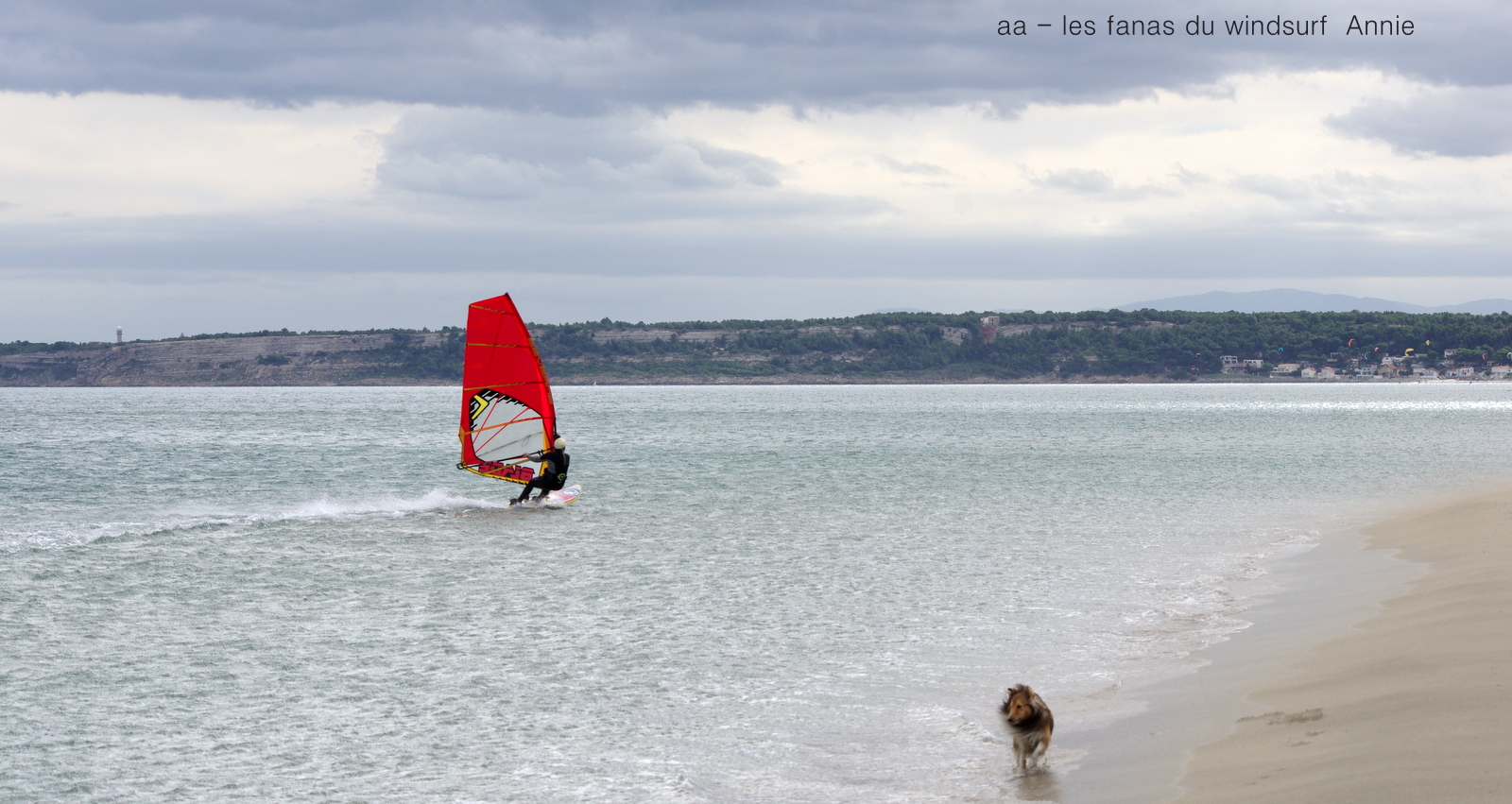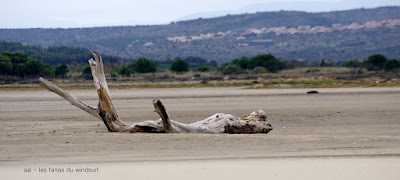 Dimanche le Rouet. Après la journée d'hier pas question d'attendre le vent à Coudalère. Nous risquons donc le Rouet avec une seule idée en tête se trouver une petit coin en paix. Cela semblait difficile en arrivant, déjà plein de monde, des gros chiens en liberté de chaque côté du Rouet . Que faire? tant pis pour le camion on passe, nettoyage complet ce soir mais ça vaut mieux qu'une journée d'angoisse! là on était bien, le vent n'est pas régulier du tout oscillant entre le nord et l'ouest toute la journée mais de trés bons moments avec des longs runs en bord de plage le Rouet comme on l'aime alors que plus haut une foule de freestylers font le bouchon dans du plein nord, incroyable! Du coup pas trop de photos si ce n'est des quelques speedeurs descendus avec la même idée que nous. La dernière photo un peu gore avec mon Lucky qui s'est jeté dans un trou d'eau proche des sable mouvants!!! tout va bien ne vous inquiétez pas toutoune était là.