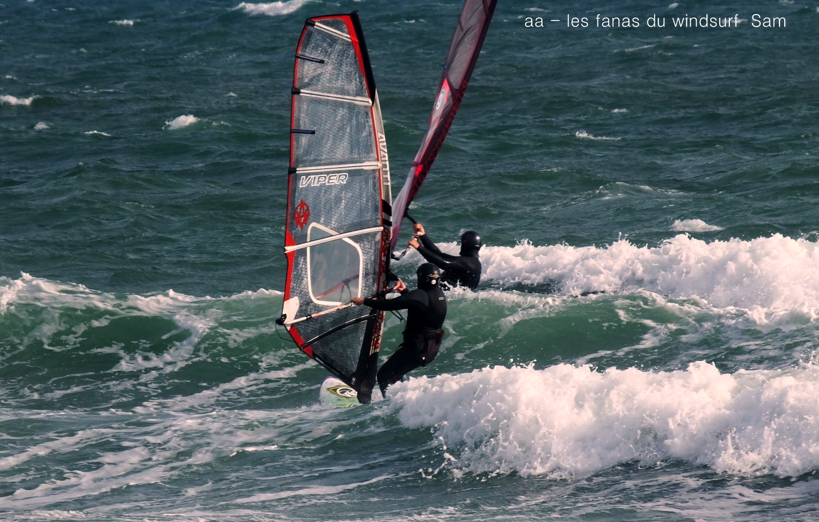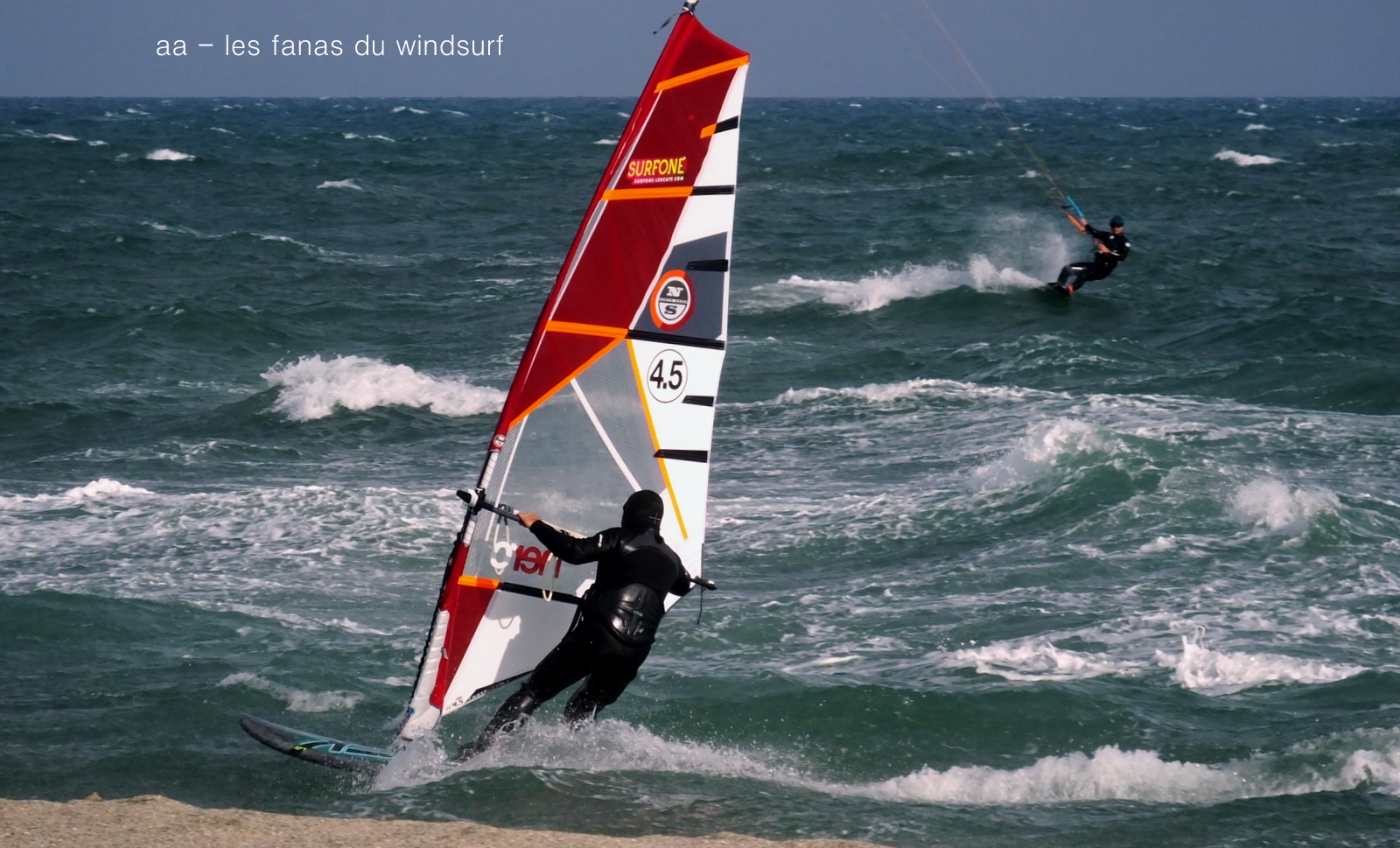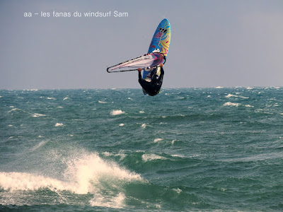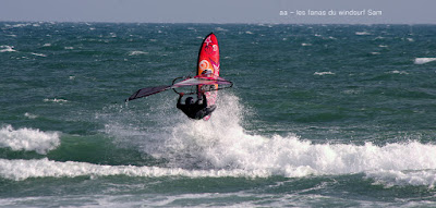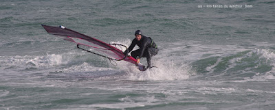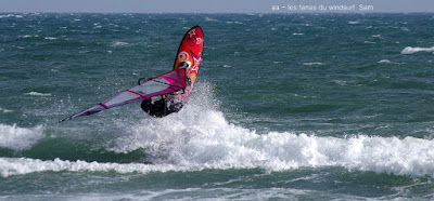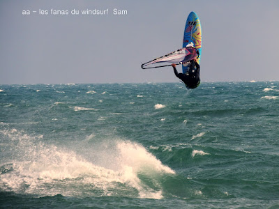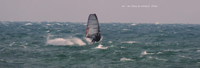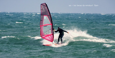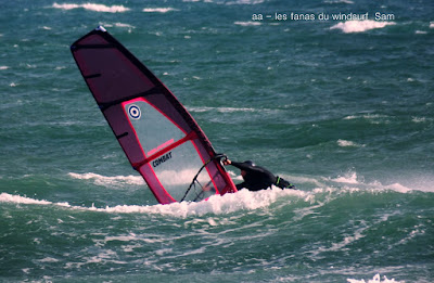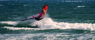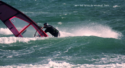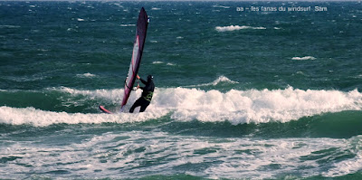 Lundi, St Cyprien. A notre arrivée le vent souffle en tempête! 45 noeuds de moyenne avec des pointes à 50, c'est quoi ce binz??, toutes les prevs donnaient St Cyp perdant! du coup j'ai pas ma petite planche ni ma 3.7, obligée d'attendre.Ca se calme on grée 4.2 sur 88 litres mais le vent est trés sud et irrégulier, je reviens me faire manger par le shorebreak qui me connait bien lol, merci à Sam d'avoir tiré mon matos de ce mauvais pas!! Sam part à l'eau avec Michael, le vent a faibli , Mike n'y crois pas et s'en va. Et puis le voilà qui se renforce et devient trés fort au point de me mettre à la rue sur ma 88 litres!! Sam continue, en trés grande forme le Sam!! du coup c'est un blog dédié..et c'est bien puisque c'est notre ami et qu'il a été le meilleur!!Et voilà St Cyp a encore frappé ! comme quoi il ne fait pas croire ces prevs!!