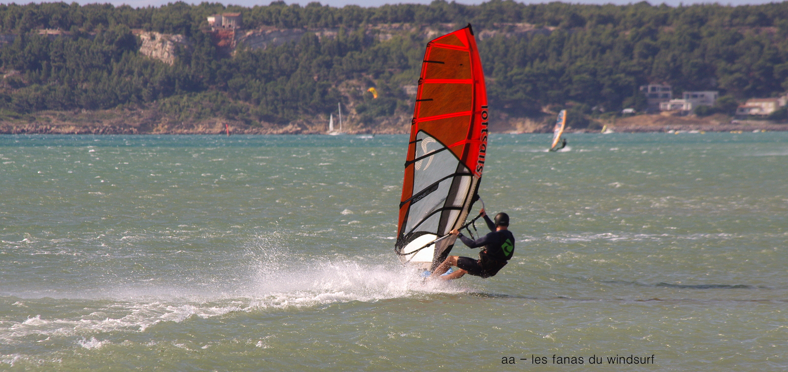 Dimanche, Le Rouet. Arrivée 7h00, pas trop de vent, puis ça se met en route il y a des petites vagues , 5.8 sur 96, trés vite le vent monte , trés fort, à la rue je change pour 5ms et diminue l'aileron, le vent monte encore je mets 4.5 et un aileron encore plus petit, rien n'y fait je ne peux pas profiter des vagues à la rue du flotteur? Vous me direz pourquoi ne pas avoir changé de flotteur?? parcequ'on a cru aux prevs et que je n'avais pris que le gros flotteur tiens, comme beaucoup. Fourbue je m'arrête quand la foule arrive, et quand je parle de foule ce n'est pas un euphémism. Plus jamais sans mon petit flotteur.