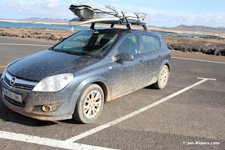 La route se poursuit, la voiture s'habille d'une jolie robe de boue et nous arrivons à Majanicho. Pas de vagues, la route a été longue, retour vers Lajares puis Cotillo pour manger.