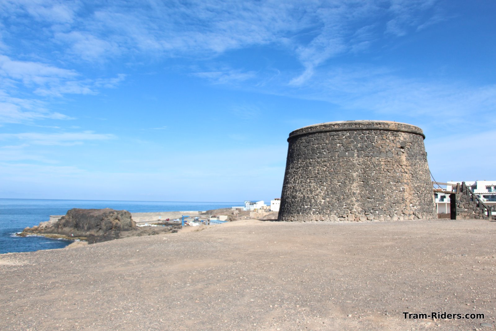 Nous passons devant Glass Beach et Flag Beach avant d'arriver à Corralejo. Quelques photos de Los Lobos et de Lanzarote, l'ile juste en face. Nous nous perdons dans les ruelles de Corallejo avant de prendre le chemin cotier, indiqué comme "juste praticable" en voiture.